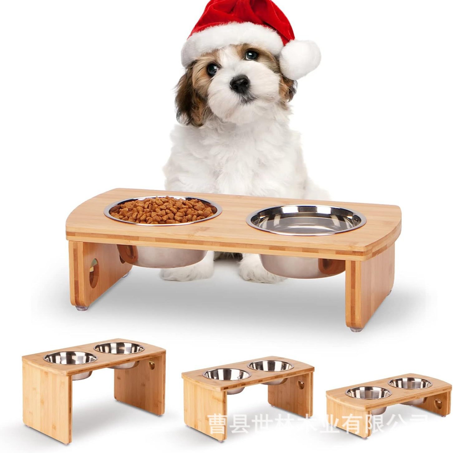 クロスボーダー木製ペット高架犬ボウル竹高さボウルラック木製ダブルボウルペットフィーダー犬猫給餌ラック