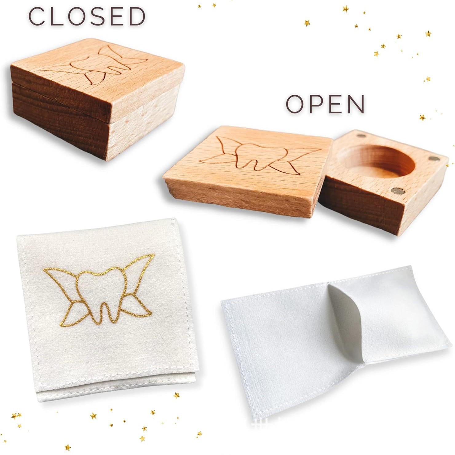 新しい正方形の乳歯ボックスデスクトップ整理ボックスクリエイティブ幼児歯収納ラック木製乳歯木箱