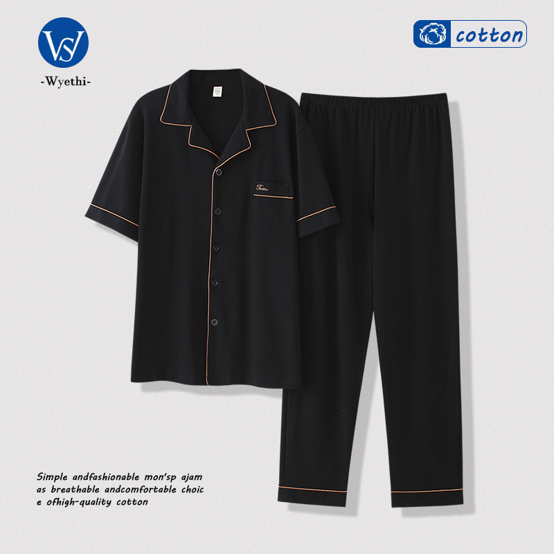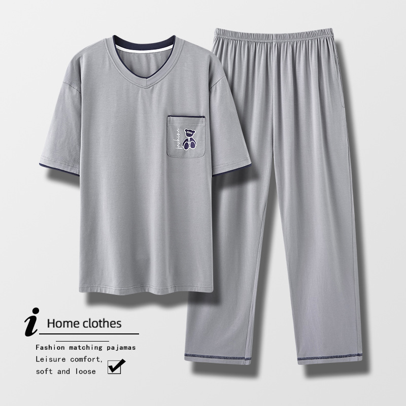 パジャマ男の夏の半袖長ズボンはゆったりしています。