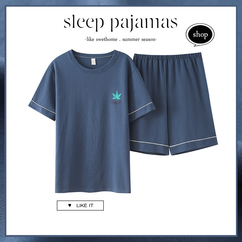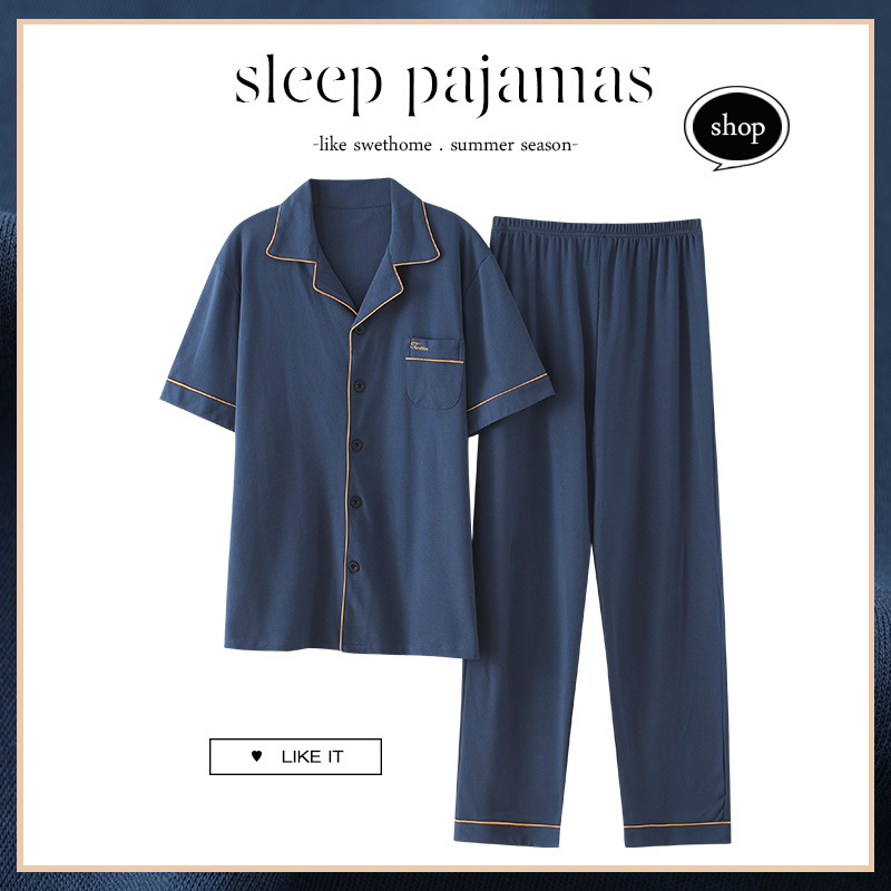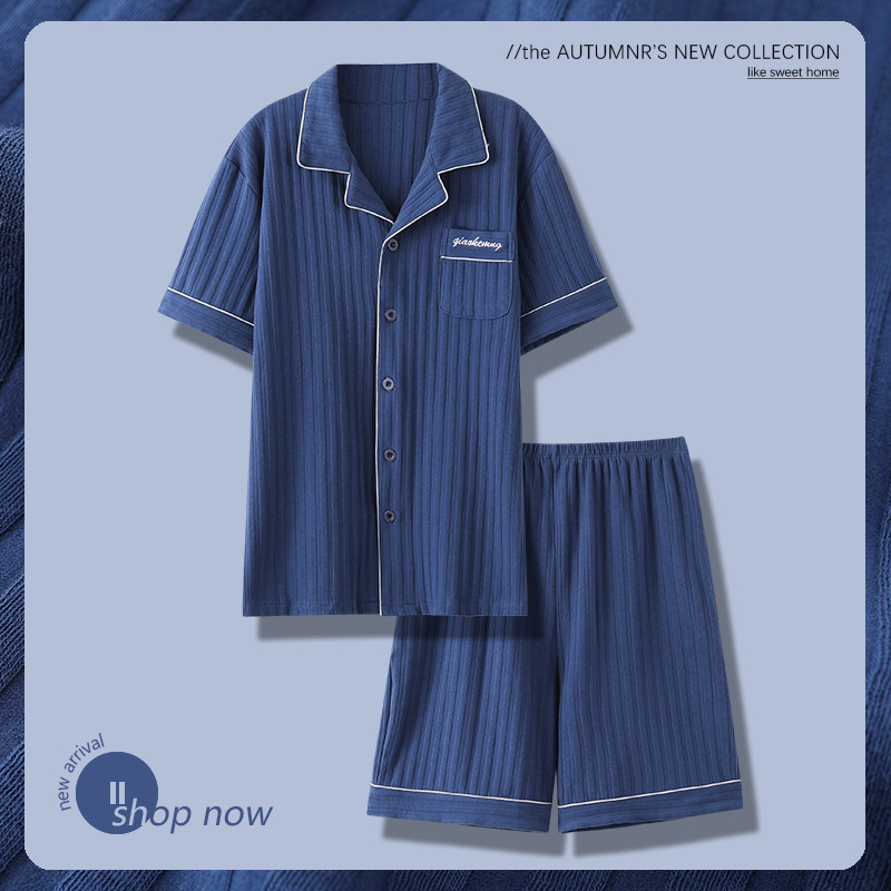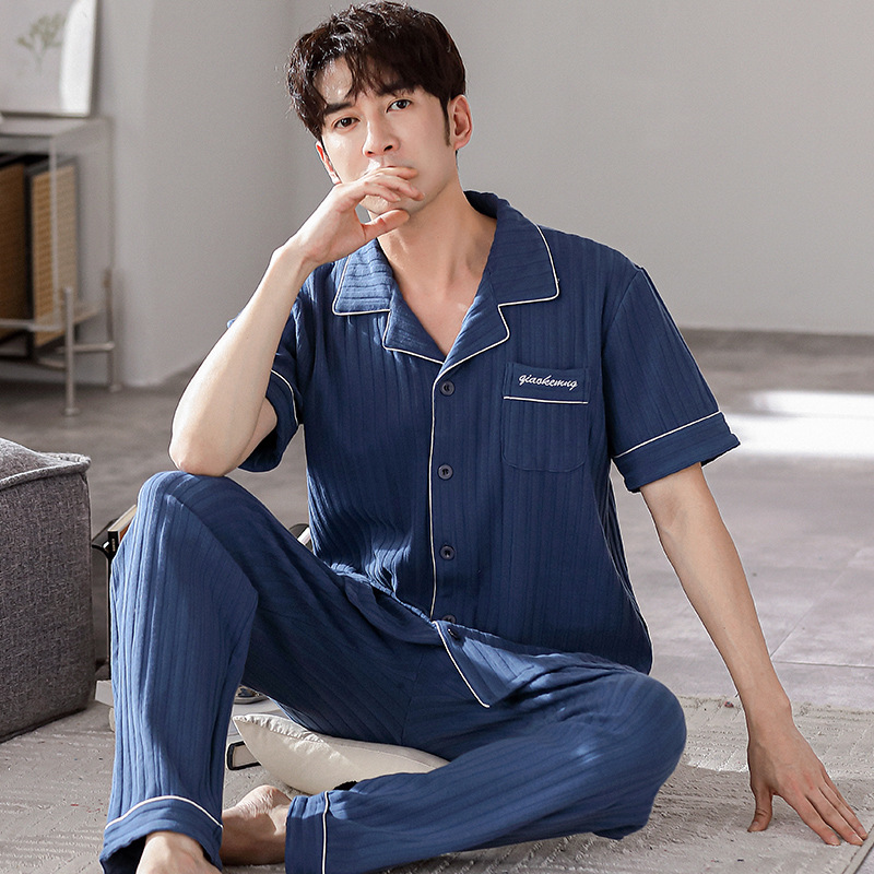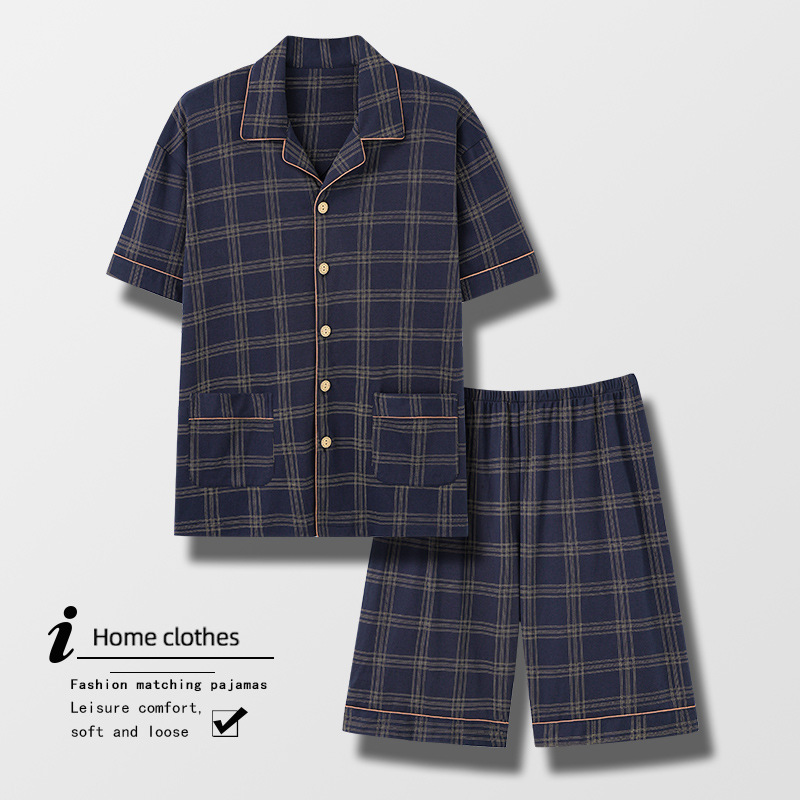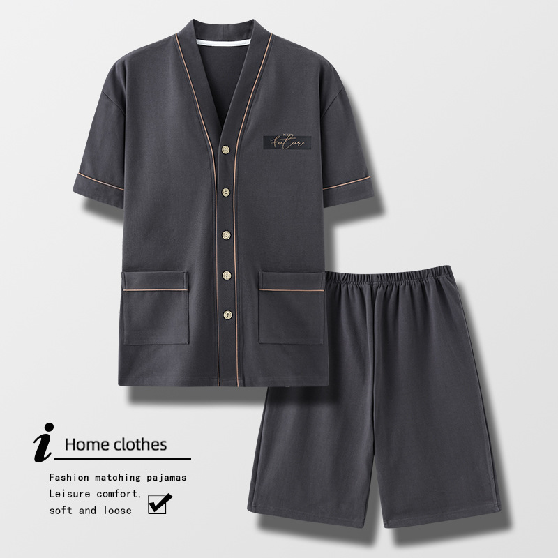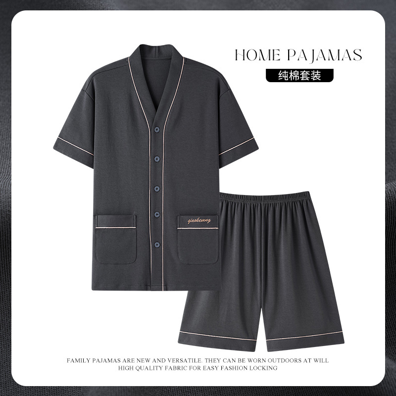 パジャマ男性夏純綿半袖半ズボンセット青年カーディガン