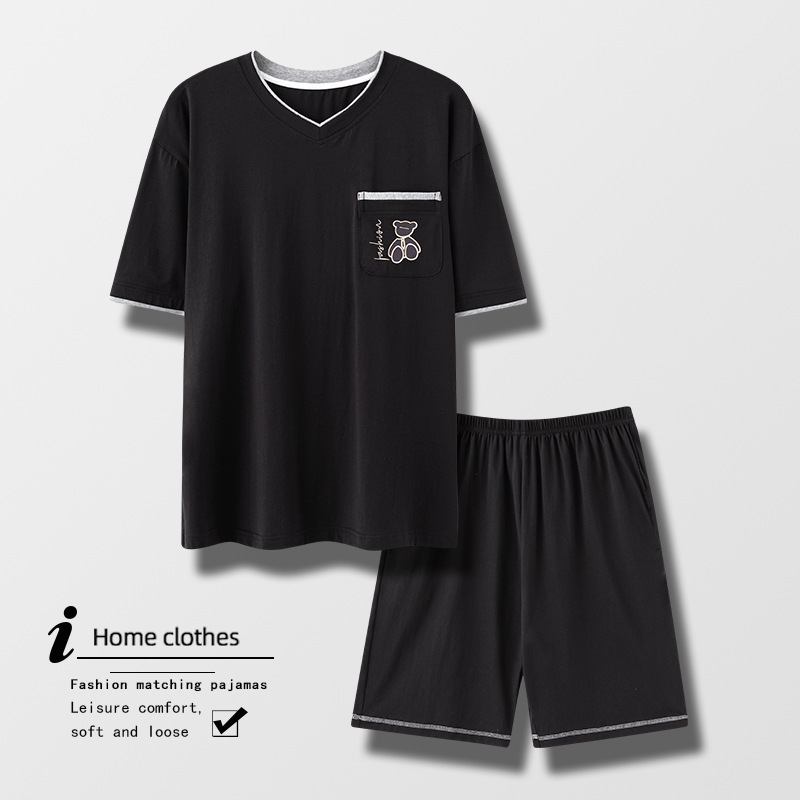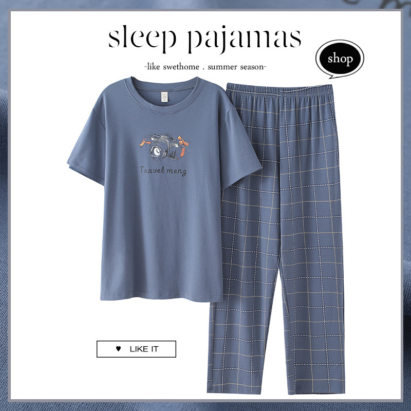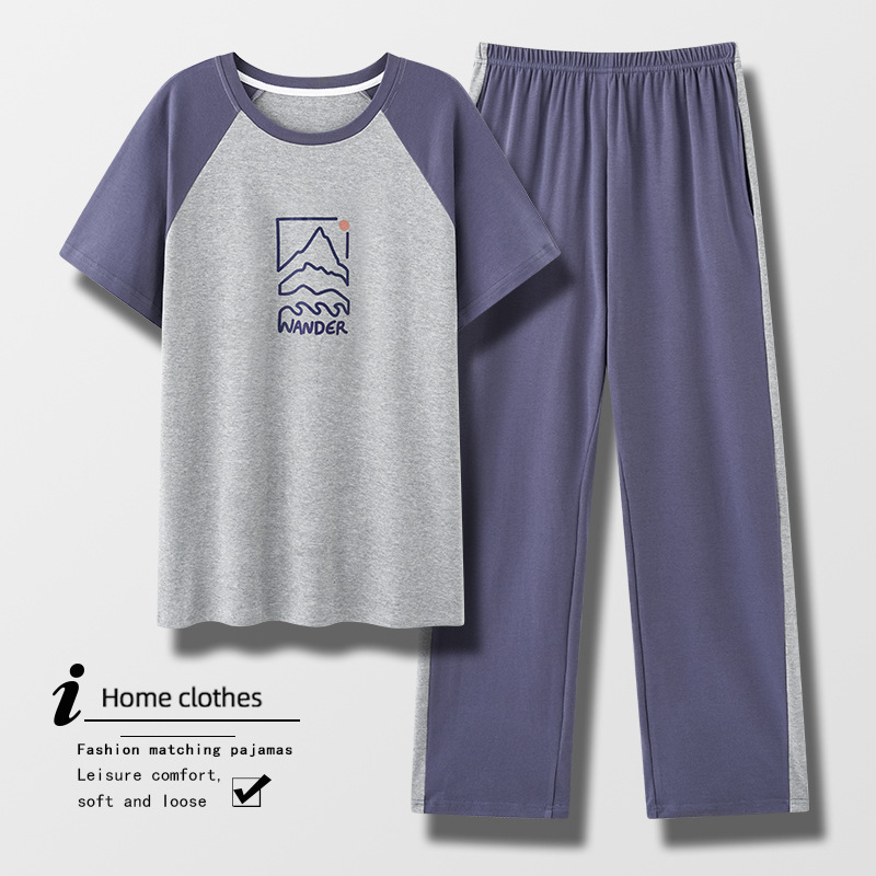 パジャマ男の夏の薄い綿の半袖丸首カジュアル風夏の学生は大きいサイズの家庭服のスーツを着ることができます。