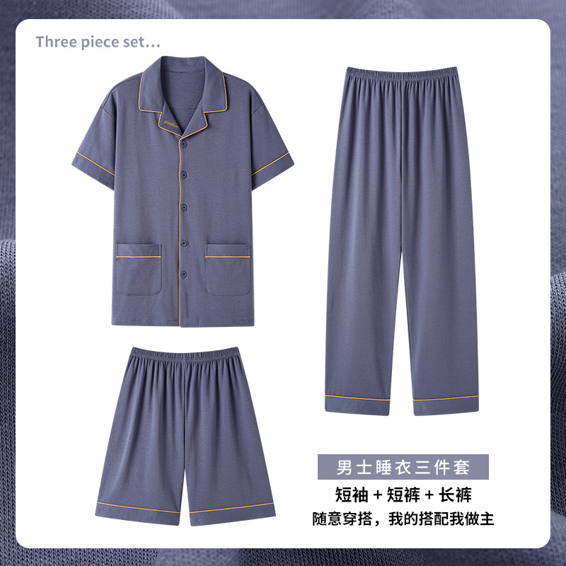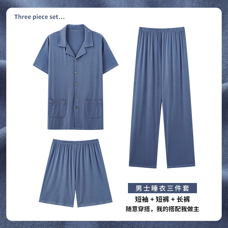 モーデール三点セットパジャマ男夏半袖半ズボン襟大きいサイズ夏薄いズボンホーム服セット