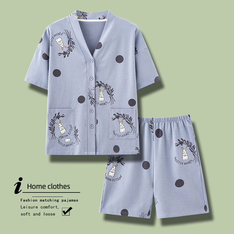 パジャマ女性夏純綿半袖カジュアルゆるいカーディガン女性夏薄いカジュアル大きいサイズホームウェアスーツ