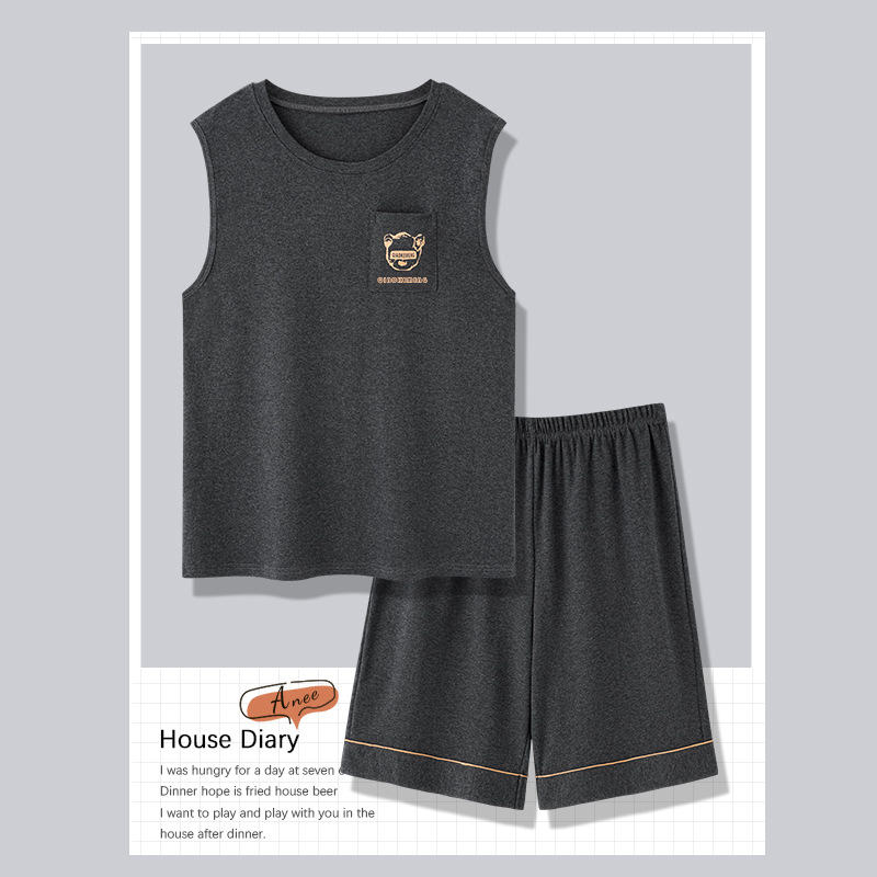パジャマ男性夏ノースリーブチョッキ短いサイズの薄い学生青年夏丸首カジュアルルームウェアセット