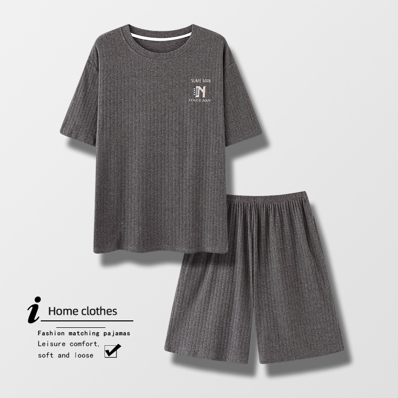 モーダルパジャマ男性夏半袖カジュアルゆるい夏の薄いサイズは、ホームウェアのスーツ卸売りを着ることができます