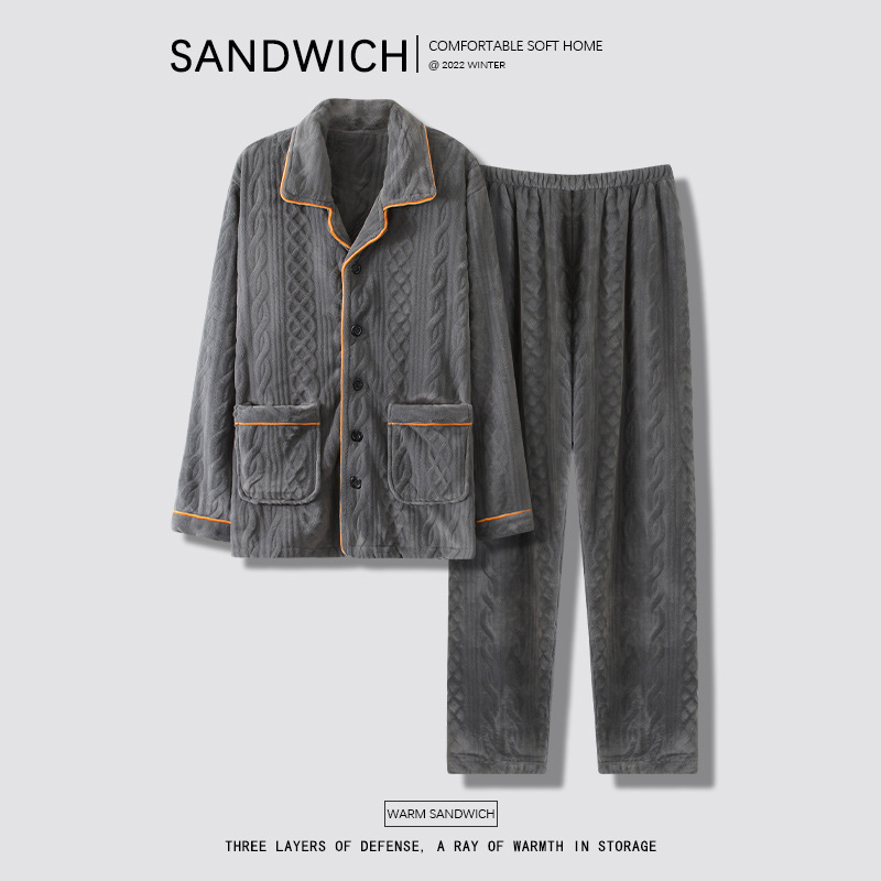 秋冬の男性パジャマ三層保温サンドイッチを厚くして、綿の長袖を大きくして、家の服を薄くして綿を挟むセットです。