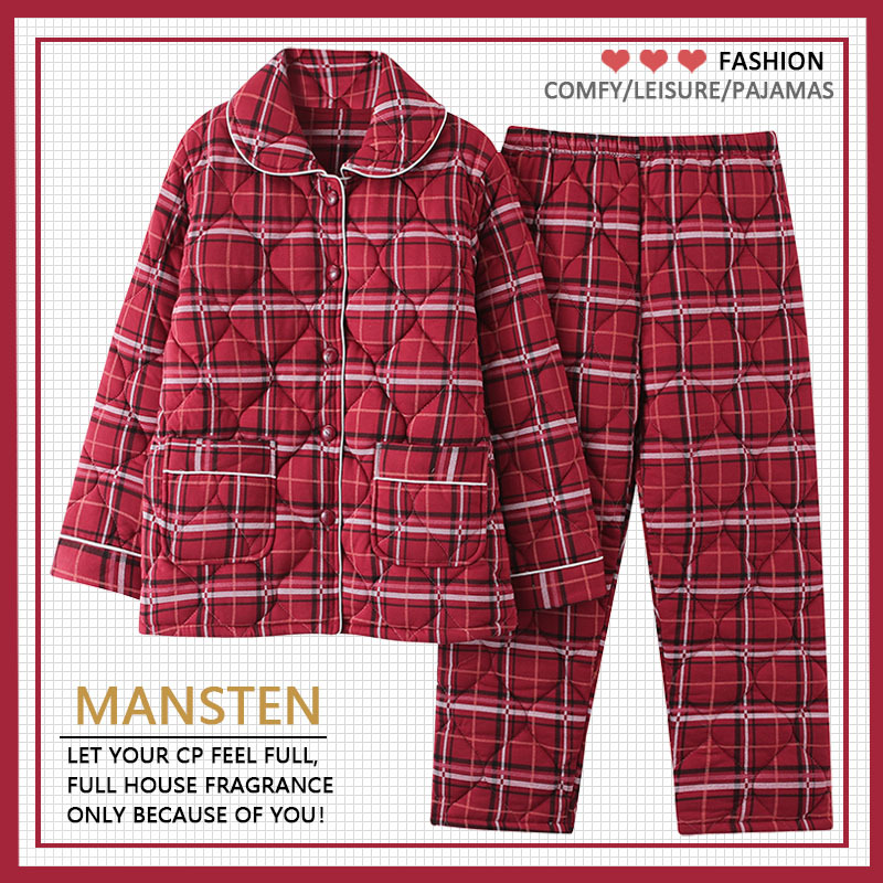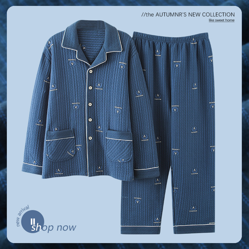 男性用パジャマ秋冬純綿厚手パジャマ長袖男性用三層空気入り綿バスローブホームウェア