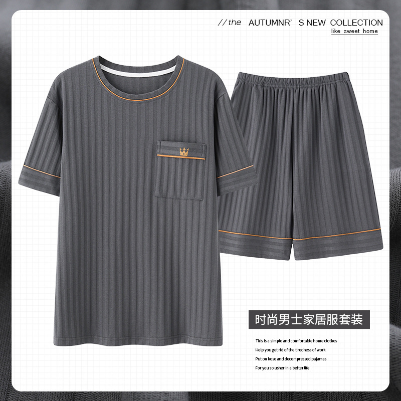 夏のパジャマ男性純綿半袖半ズボンの薄いタイプの青少年学生は夏に太って大きいサイズの部屋の服のスーツをプラスします。