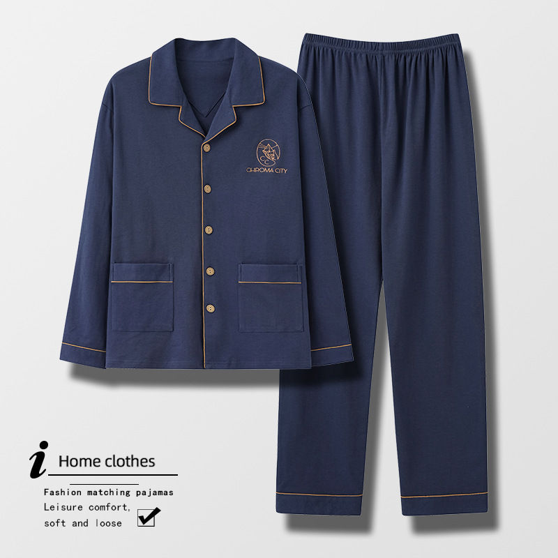 男性パジャマ男性春秋純綿長袖長ズボンカーディガン大サイズ秋冬シンプルカジュアル家庭服セット卸売り