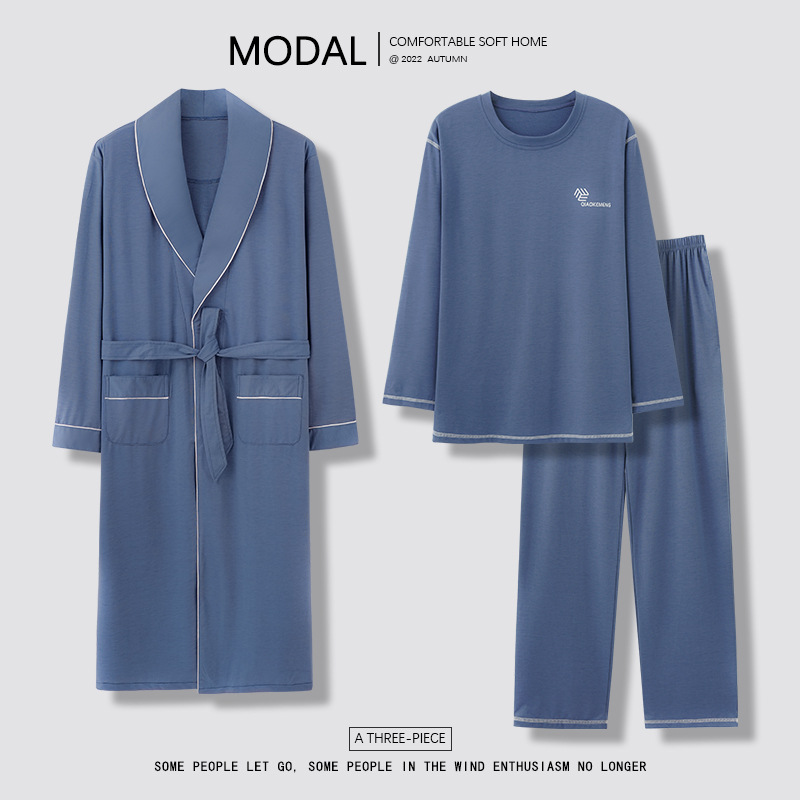 モーダル男性パジャマ男性タイプ春秋タイプ長袖長ズボン中年お父さん大きいサイズ3点セットパジャマホームウェア