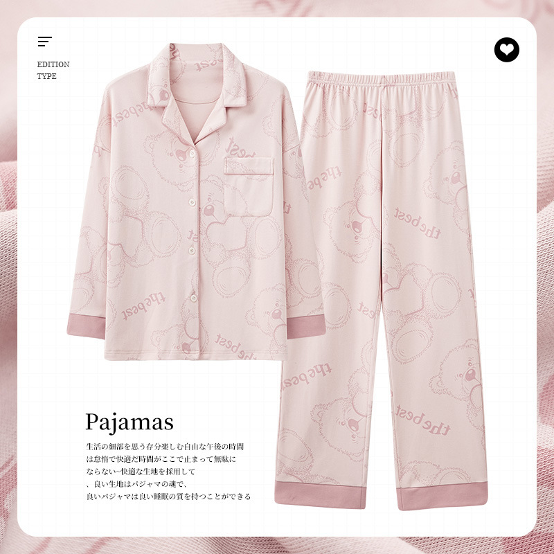 純綿パジャマレディース春秋長袖長ズボン秋冬カーディガン大きいサイズ中年お母さんホームウェアセット生放送