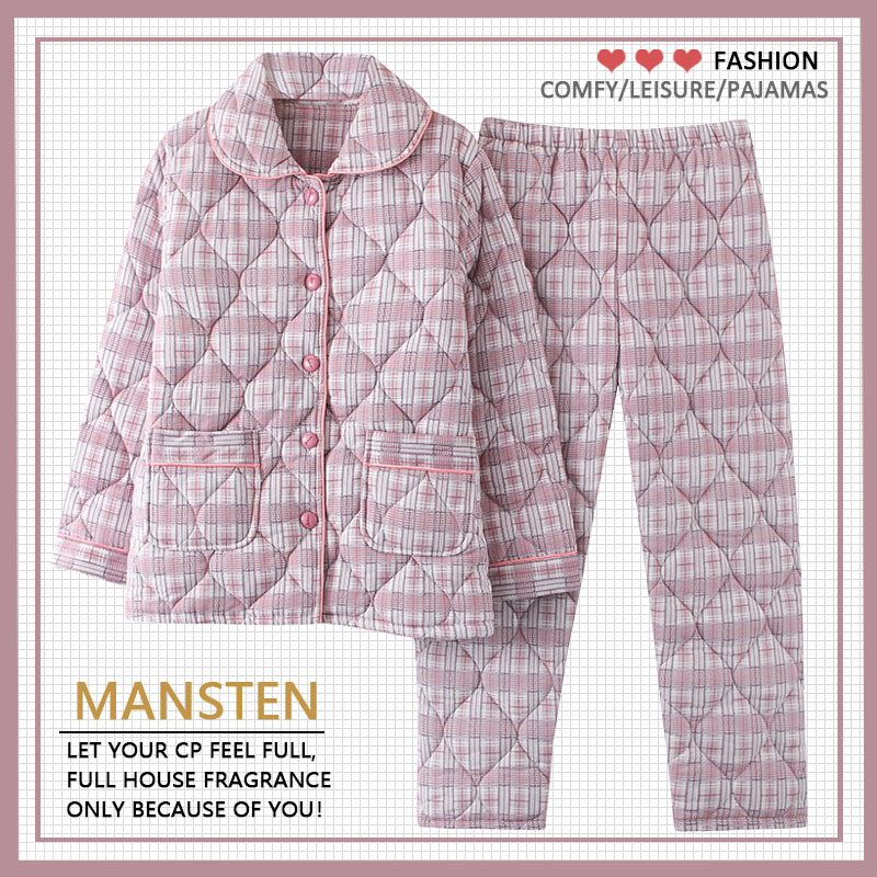 女性のパジャマは綿を挟んで冬の超厚い中高年のお母さんの綿服の3層の厚い保温の綿入れの上着の女性の家の服を挟みます。