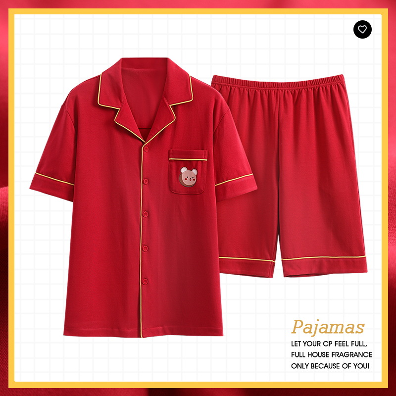 赤いパジャマメンズピュアコットン夏半袖干支年結婚式お祝いカーディガン大きいサイズホームウェアツーピーススーツ