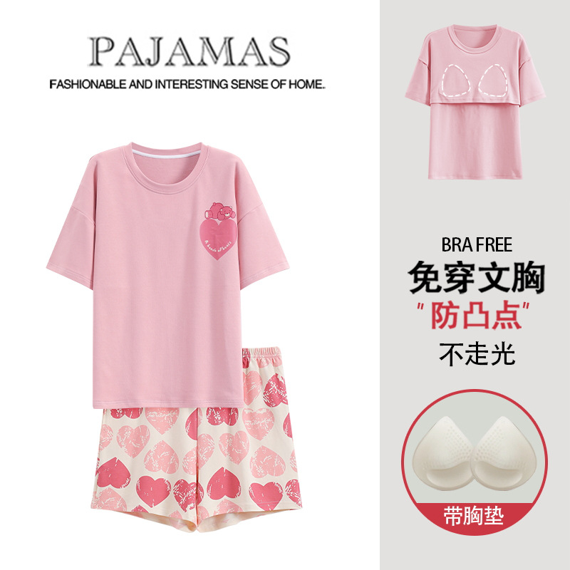 女性用パジャマ、胸パッド付き夏用半袖ショーツセット、屋外で着用可能、漫画の甘い純綿の寮のホーム服