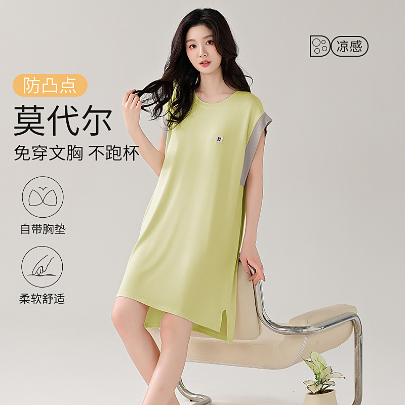 2025 新しい胸パッド付きナイトガウン女性のパジャマ夏モーダル薄いベストノースリーブ甘いドレスアウターウェア
