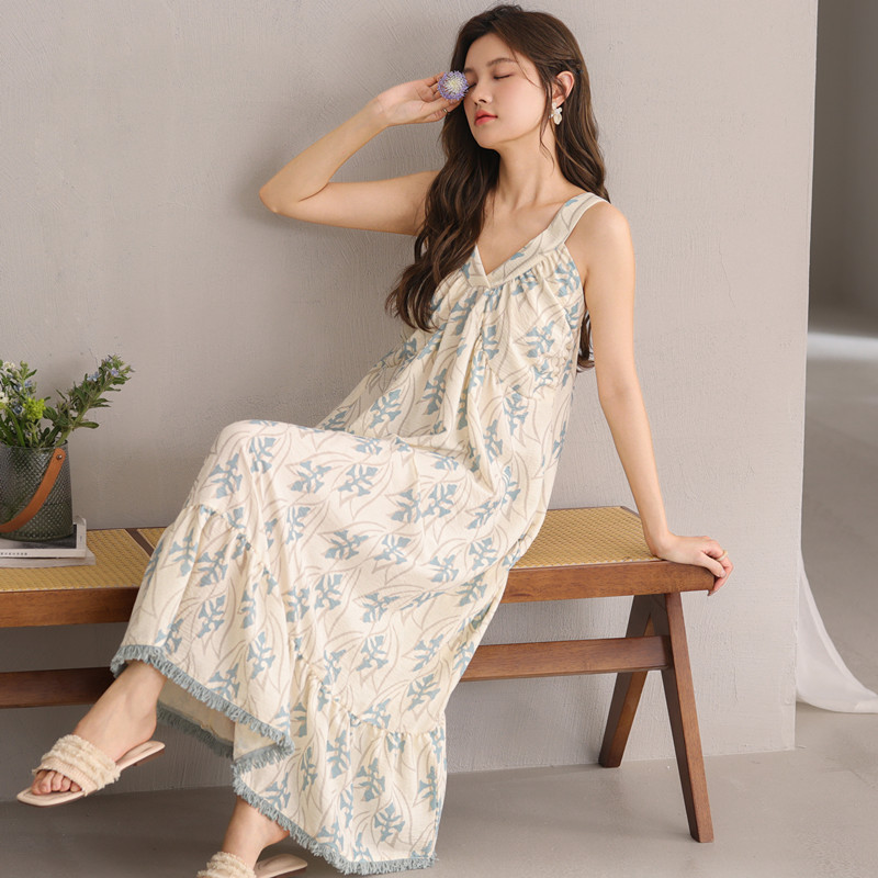 夏サスペンダー胸パッド寝間着女性のクラウドコットン和風インスタイル甘い女の子リボンドレスホーム服