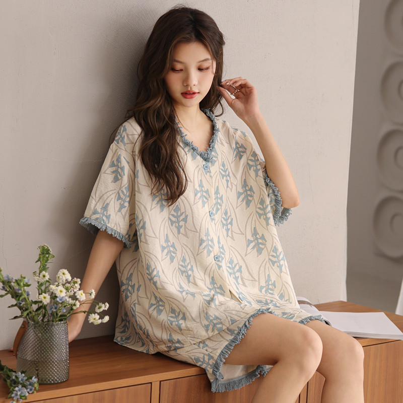 女性用パジャマ、夏用クラウドコットン半袖ショーツ、和風プリンセススタイルの女の子が家着スーツの外でも着用できる