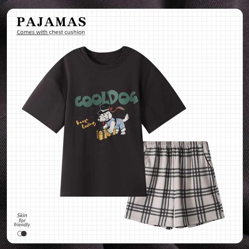 【巨柔】メンズモーダルパジャマ半袖夏2025新作青少年半ズボン家庭服セット