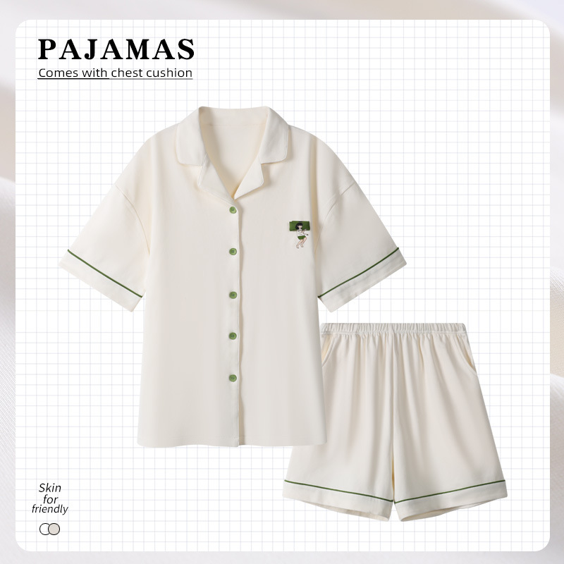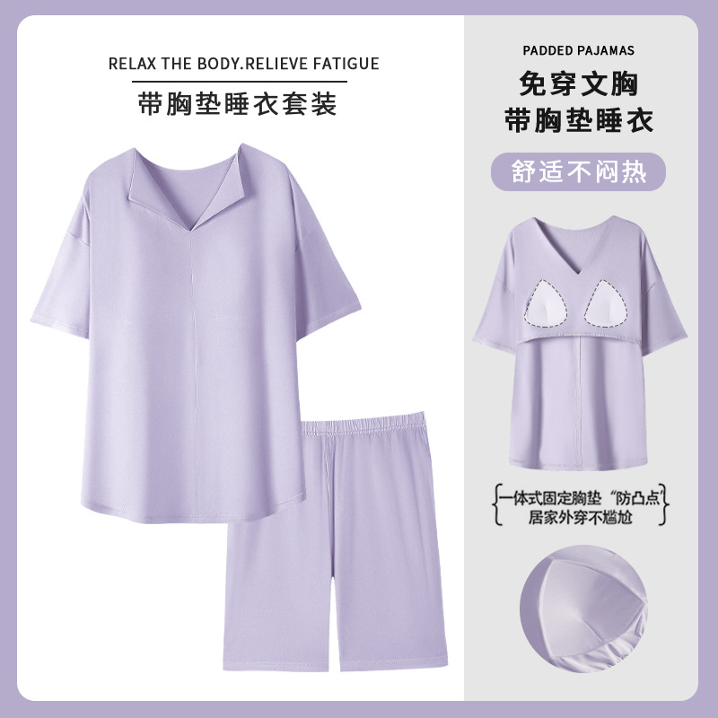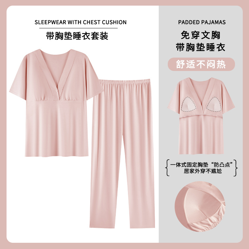 モーダルパジャマ女性用夏胸パッド付き半袖パンツ2025新型女性ネット赤タイプホームウェア