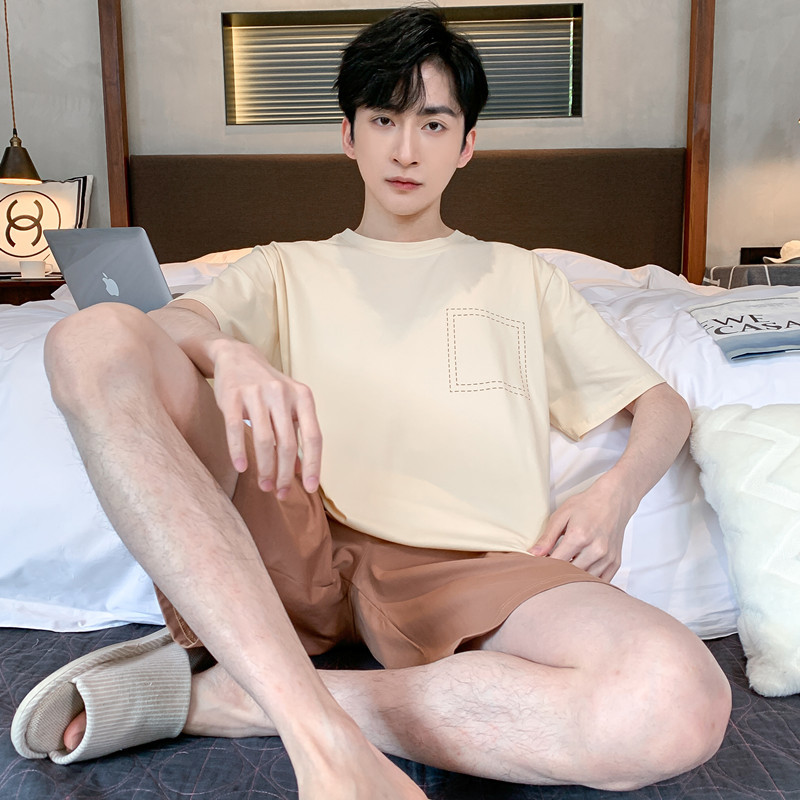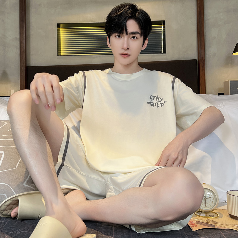 モーダルパジャマ男性夏の薄い半袖青少年は男性の夏の家庭服を着ることができる
