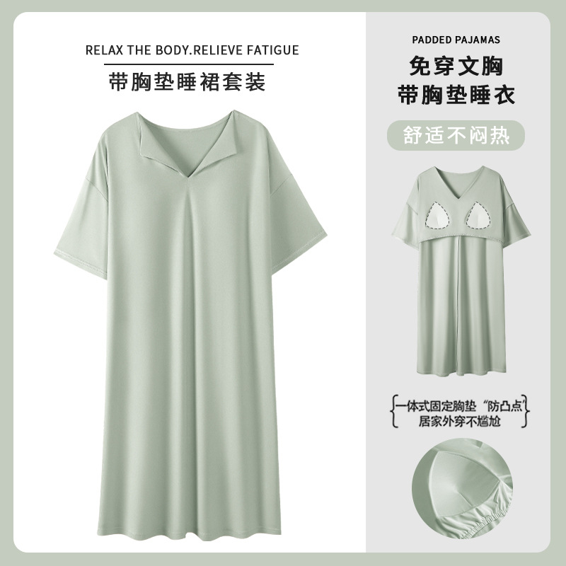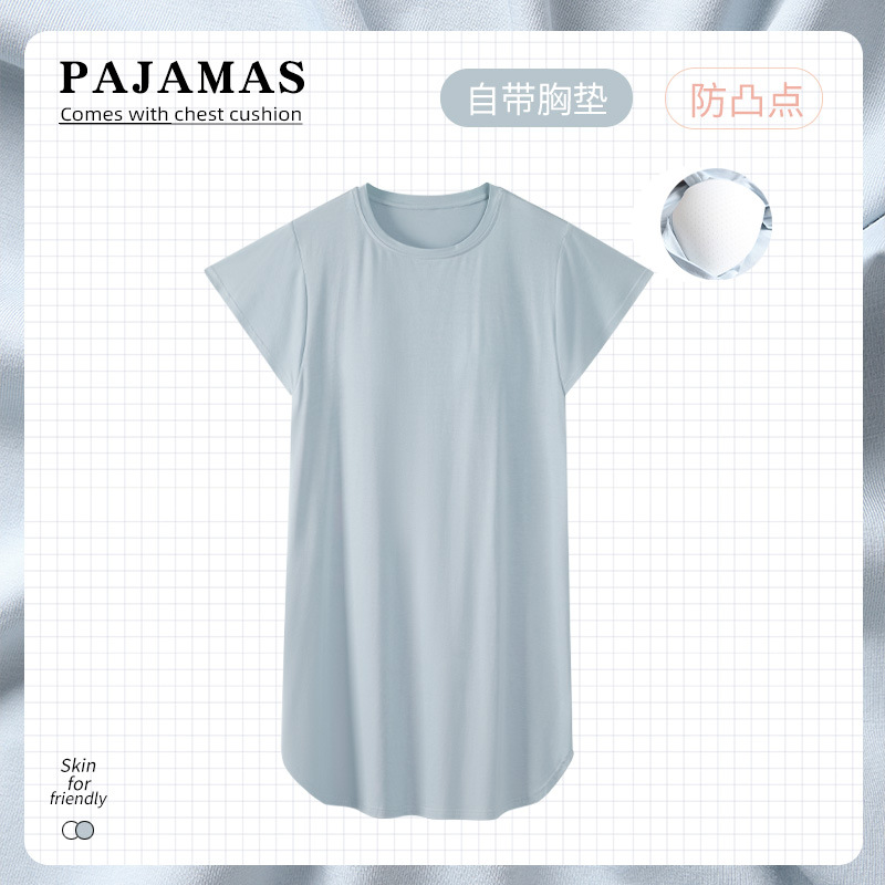 寝ているスカートの女性の夏のモーデールは胸パッドの半袖の薄いタイプの氷の糸を持って家の服のパジャマのワンピースを着ることができます。
