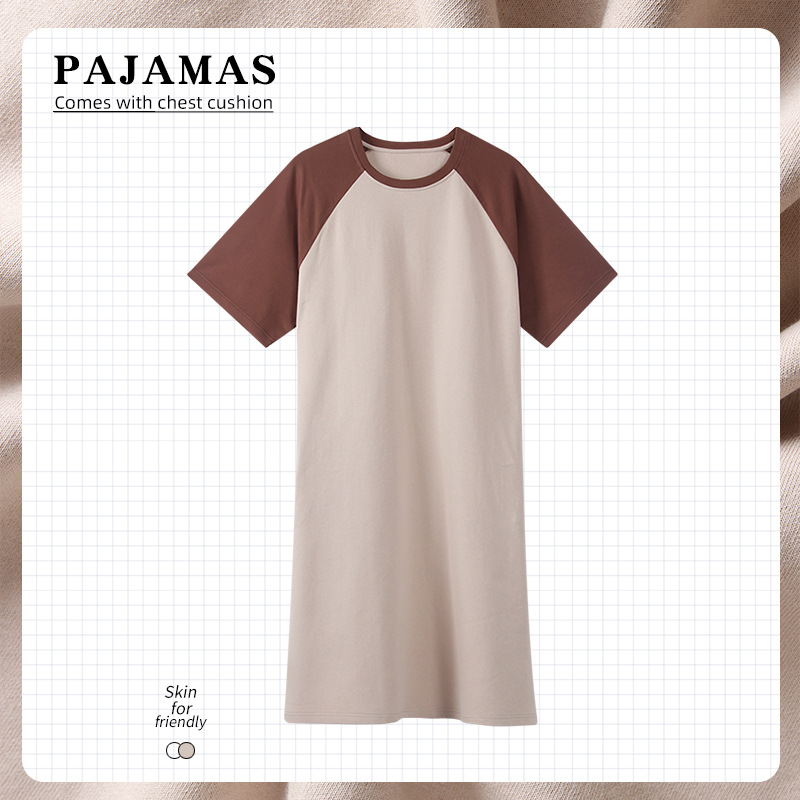 寝ているスカートの女性の夏のモーデールの半袖の薄いタイプの女性のパジャマ2025新型の大きいサイズのカジュアルな家庭服は外に着ることができます。