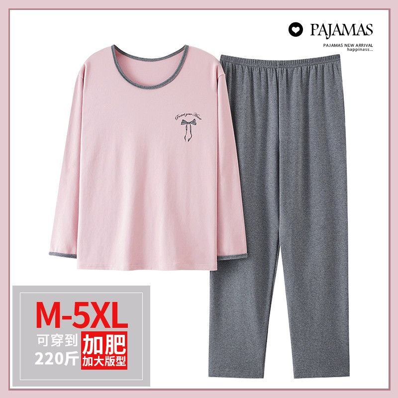 【5XL特大サイズ】パジャマ女子春と秋の純綿学生長袖長ズボンがゆったりしています。