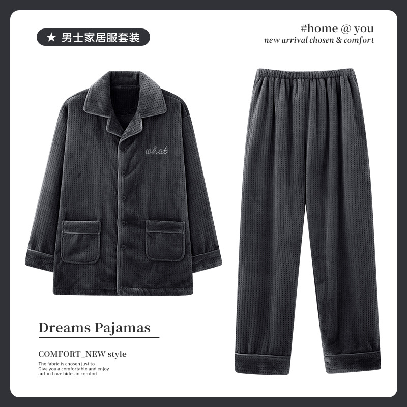 コーラルベルベットのパジャマ男性用秋冬の厚いベルベットの保温冬用男性用フランネルのジャケット