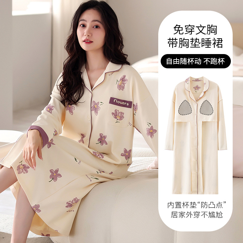 長袖のパジャマの女性は胸のパッドの純綿のvネックのカーディガンを持っています。
