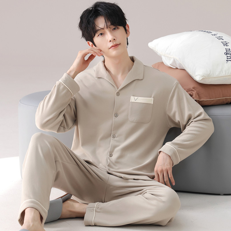 男性パジャマ春秋綿質長袖秋冬日新作カーディガン