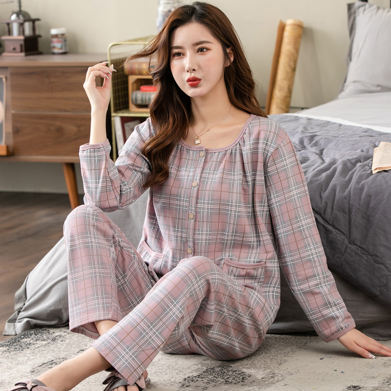 パジャマの女性春秋の長袖の長ズボンの大きいサイズの綿の秋のスーツの寮は女性の高級な部屋の服を着ることができます。