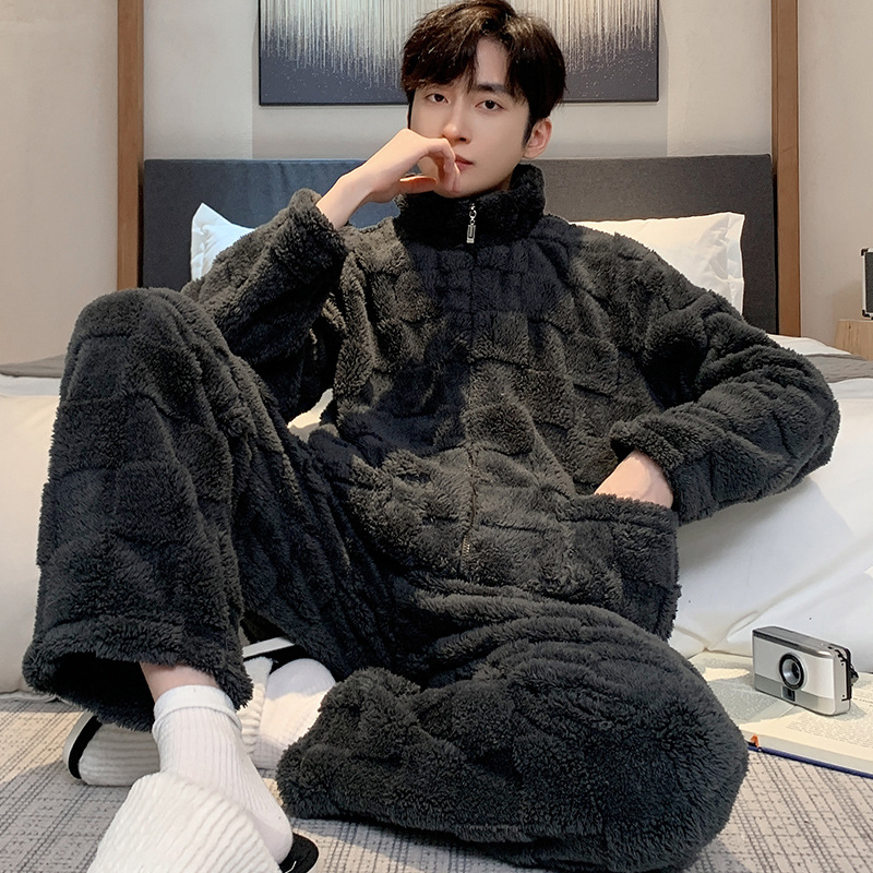徳パイルは冬の男性の襟を厚くして長袖のズボンのパジャマを着ることができる