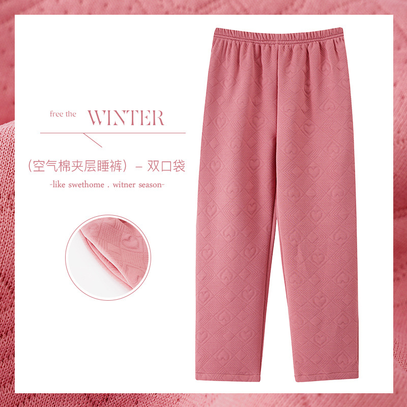 空気綿パジャマ女性秋冬サンドイッチ三層厚綿質長袖春秋保温薄綿家庭服セット