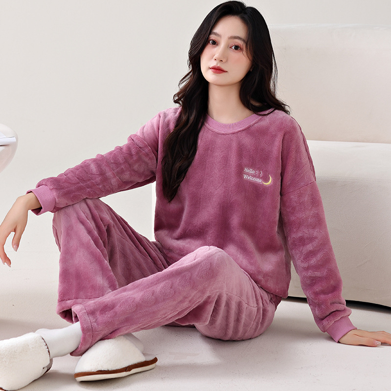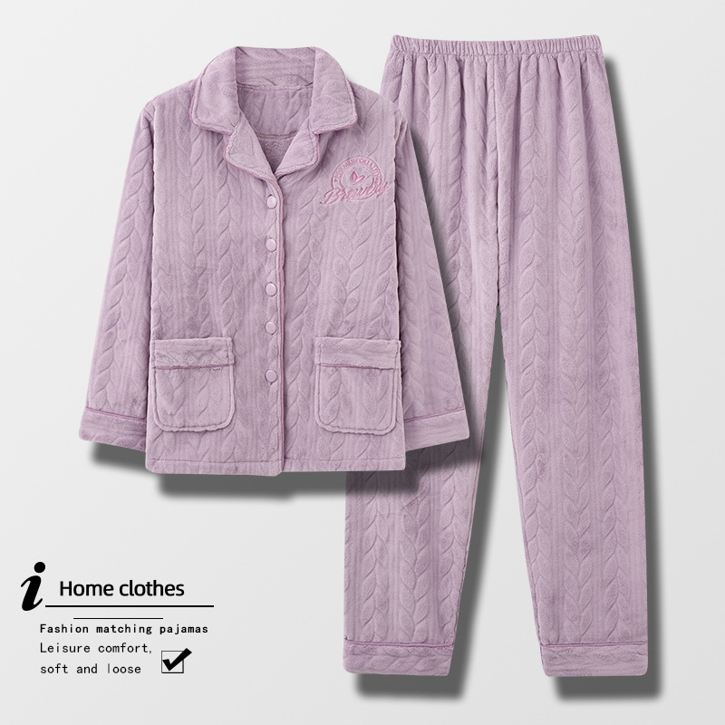 ベルベットパジャマ女性秋冬のカーディガンは、ベルベットの家庭服セットを厚くして冬に保温して着る
