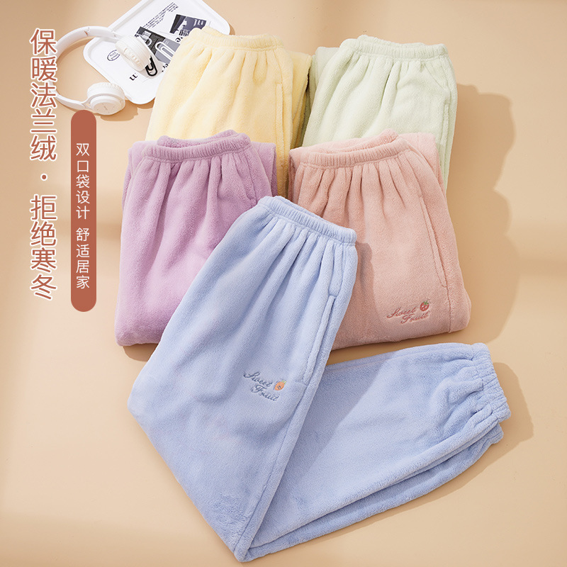 秋冬のフランネルの寝ズボンの女性は厚いベルベットのベルベットの家のズボンの女性のズボンの束のズボンの足の大きいサイズがゆったりしている