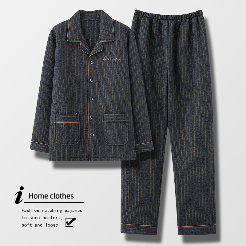綿を挟んでパジャマをします。男性の秋冬の純綿は長袖の中年のお父さんを厚くします。