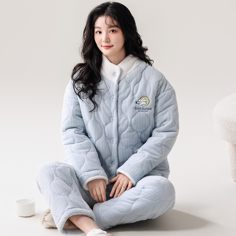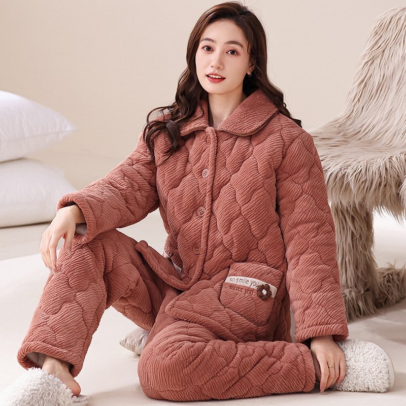メーカー直販のサンゴの綿毛と綿のパジャマ秋冬の女性2024の新型の保温性の厚い大きいサイズの部屋の服のスーツ