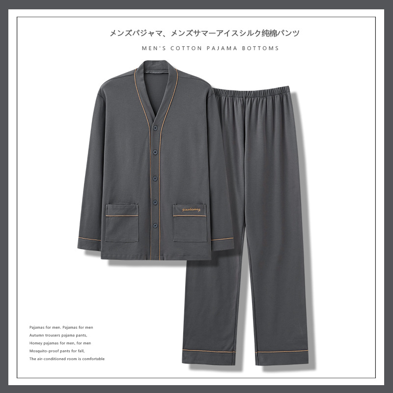 男性パジャマ男春秋純綿長袖長ズボンカーディガンvネックプラス肥料プラスサイズホームウェアセット卸売り