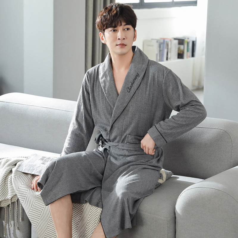 男性の寝衣の男性の春と秋の純綿の長袖の薄いタイプのバスローブのパジャマの長いタイプは肥えています。