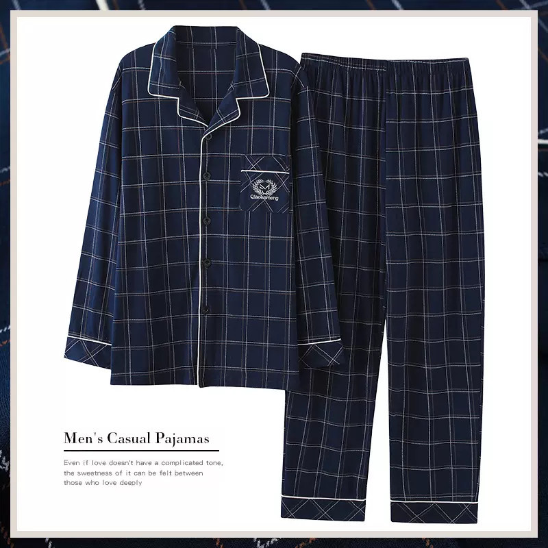 寝衣男性パジャマ春秋純綿長袖バスローブ男性式加肥プラスサイズ秋冬ホームウェア対外貿易卸売り