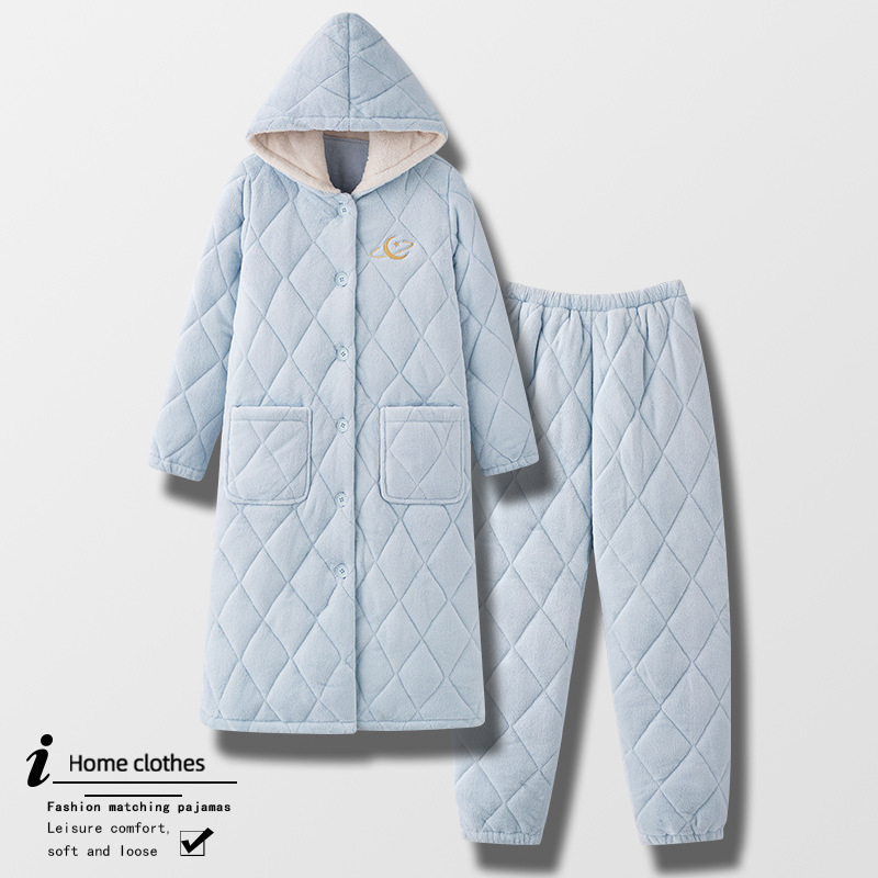 三層綿を挟んで寝ている服の女性の冬の中で、長いタイプの厚いベルベットのカーディガンのパジャマの漫画の子犬の家の服のスーツ
