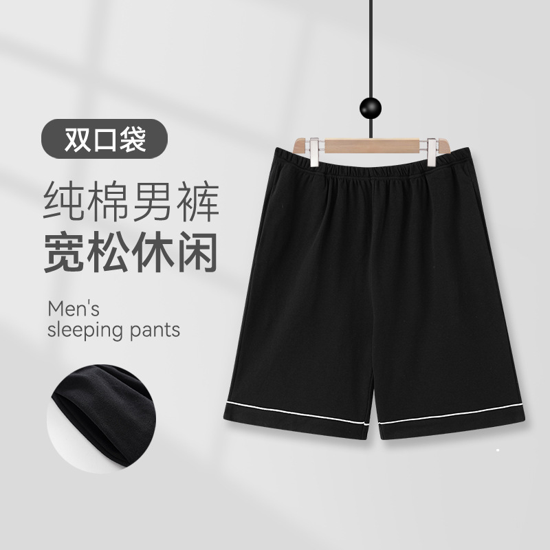 綿の半ズボンの男性の夏の薄いタイプの家で寝ているズボンの男性のカジュアルなゆったりしている5分のズボンの綿の大きいパンツの家で服を着ます。