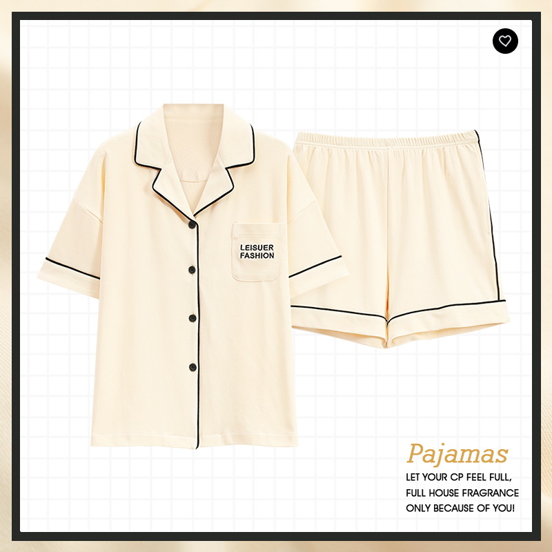 女性用の夏の薄いパジャマ、半袖ショーツスーツ、純綿ラペルカーディガン、スイートホームウェアを送ることができます。