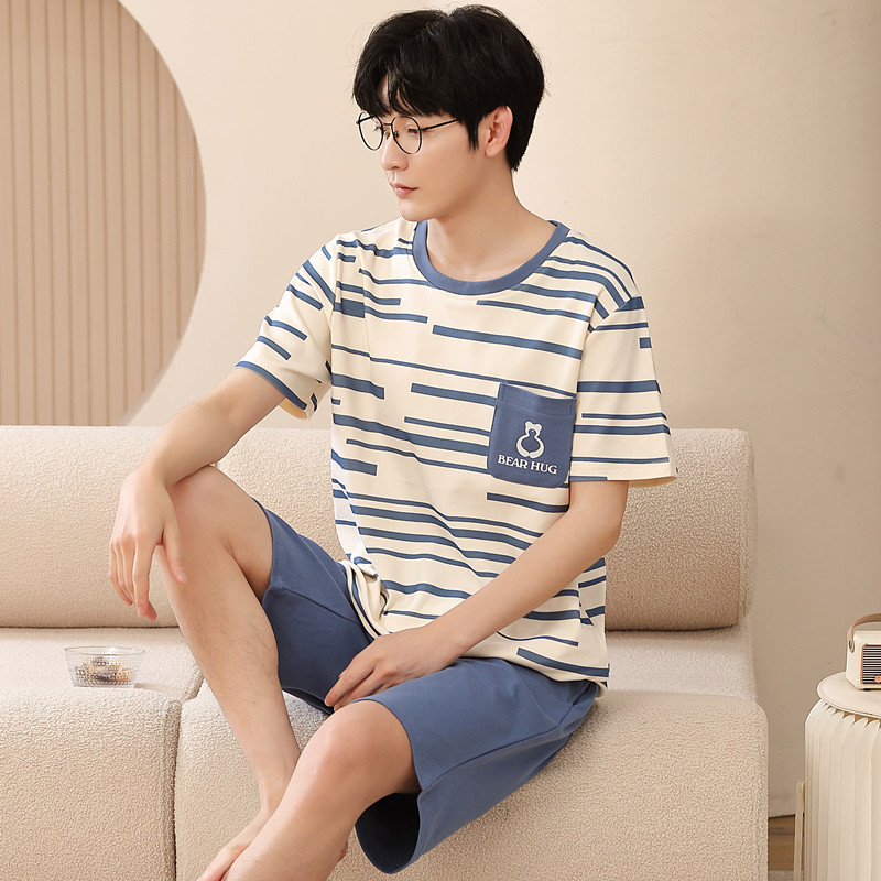 クロスボーダー夏パジャマ男性用 2025 新しい綿半袖ショーツ薄型スタイルは家の服スーツの外で着用できます卸売