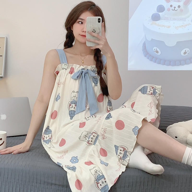 サスペンダーナイトガウン女性の夏の綿 2025 新しいルーズ大きいサイズノースリーブベストパジャマホーム服は屋外で着用できます
