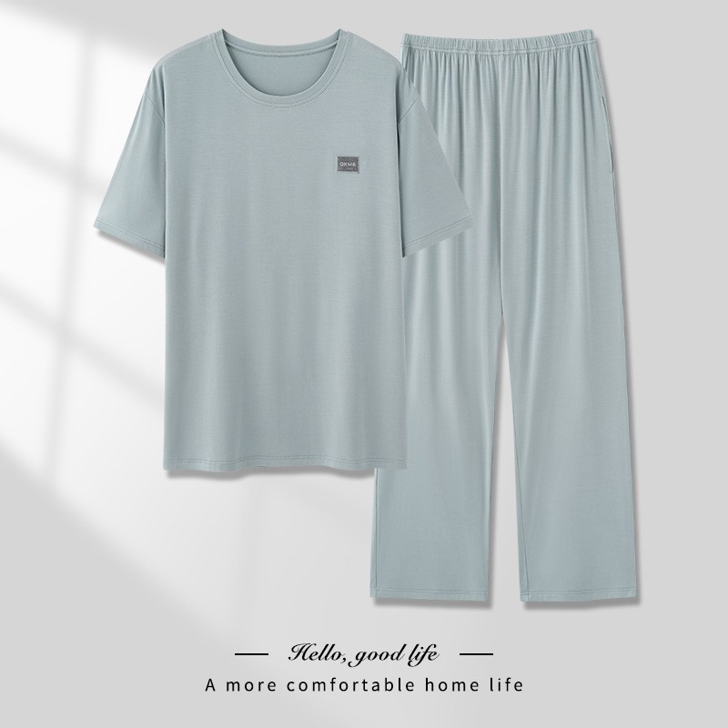 男性のパジャマのモーデール夏の薄い半袖のズボンの家の服の夏の氷の糸の純色のカジュアルな大きいサイズのスーツ