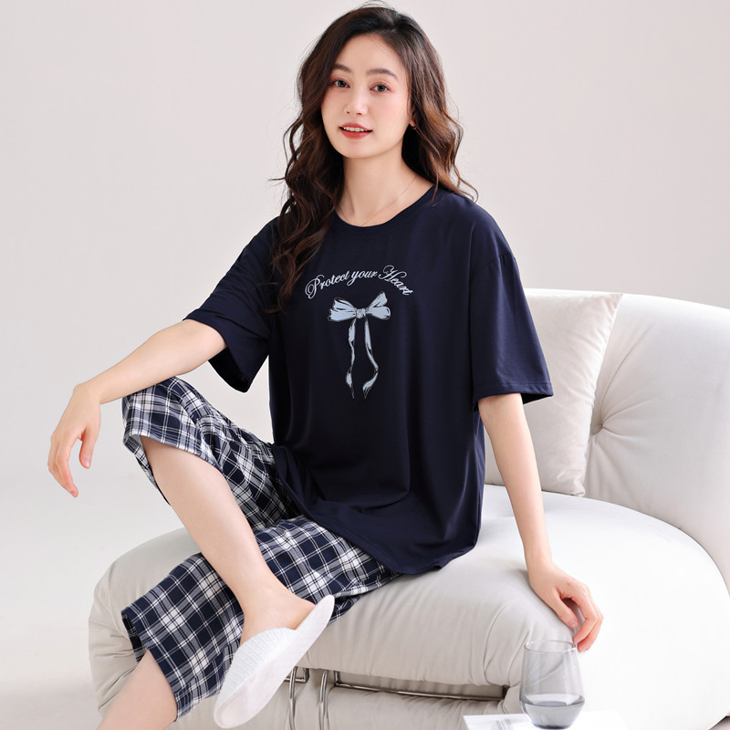 5XL 特大サイズモーダルパジャマ女性の夏の半袖クロップドパンツ 2025 新しいカジュアルシンプルなスタイルのホーム服