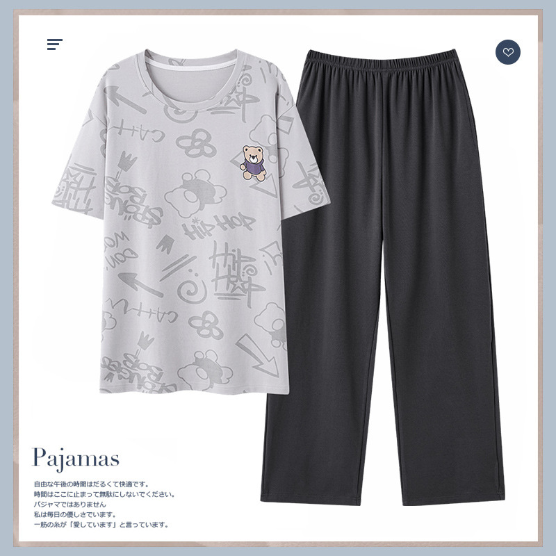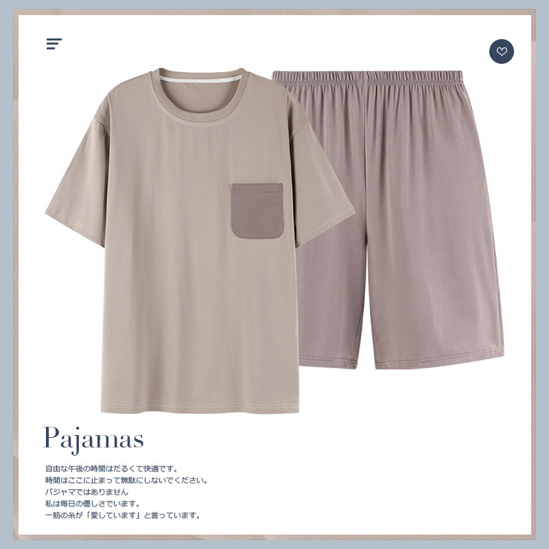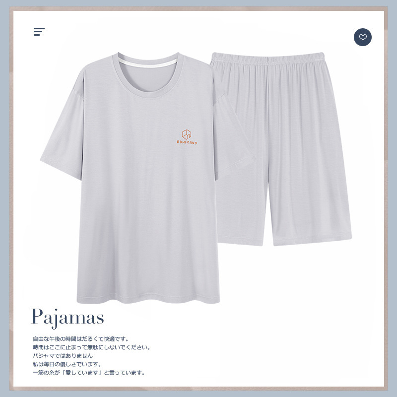 モーダルパジャマ男性夏半袖ゆるいシンプルな夏の氷糸は青年男性の部屋服セットを着ることができる