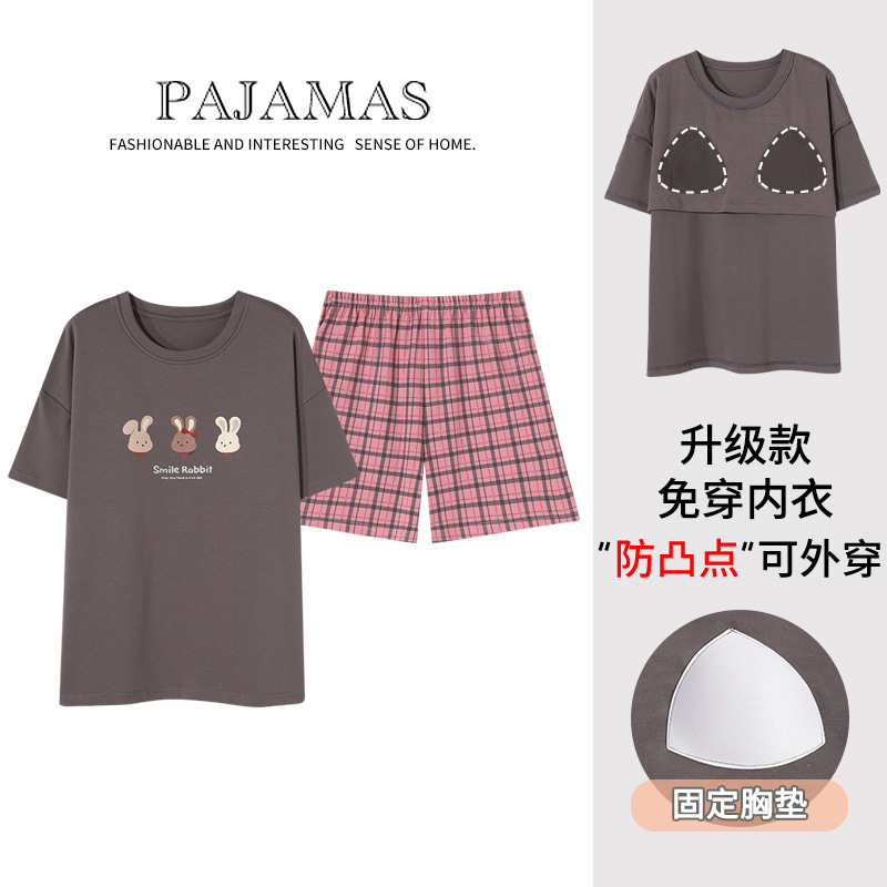 純綿パジャマ女性の夏は胸パッド付きの薄い半袖の爆発的なかわいい女性はカジュアルに家の服のスーツを着ることができる