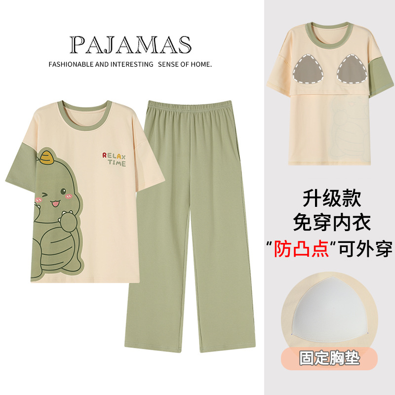 2024年新型パジャマ女性夏半袖胸パッド付き夏薄いアニメ女性家庭服セット卸売り
